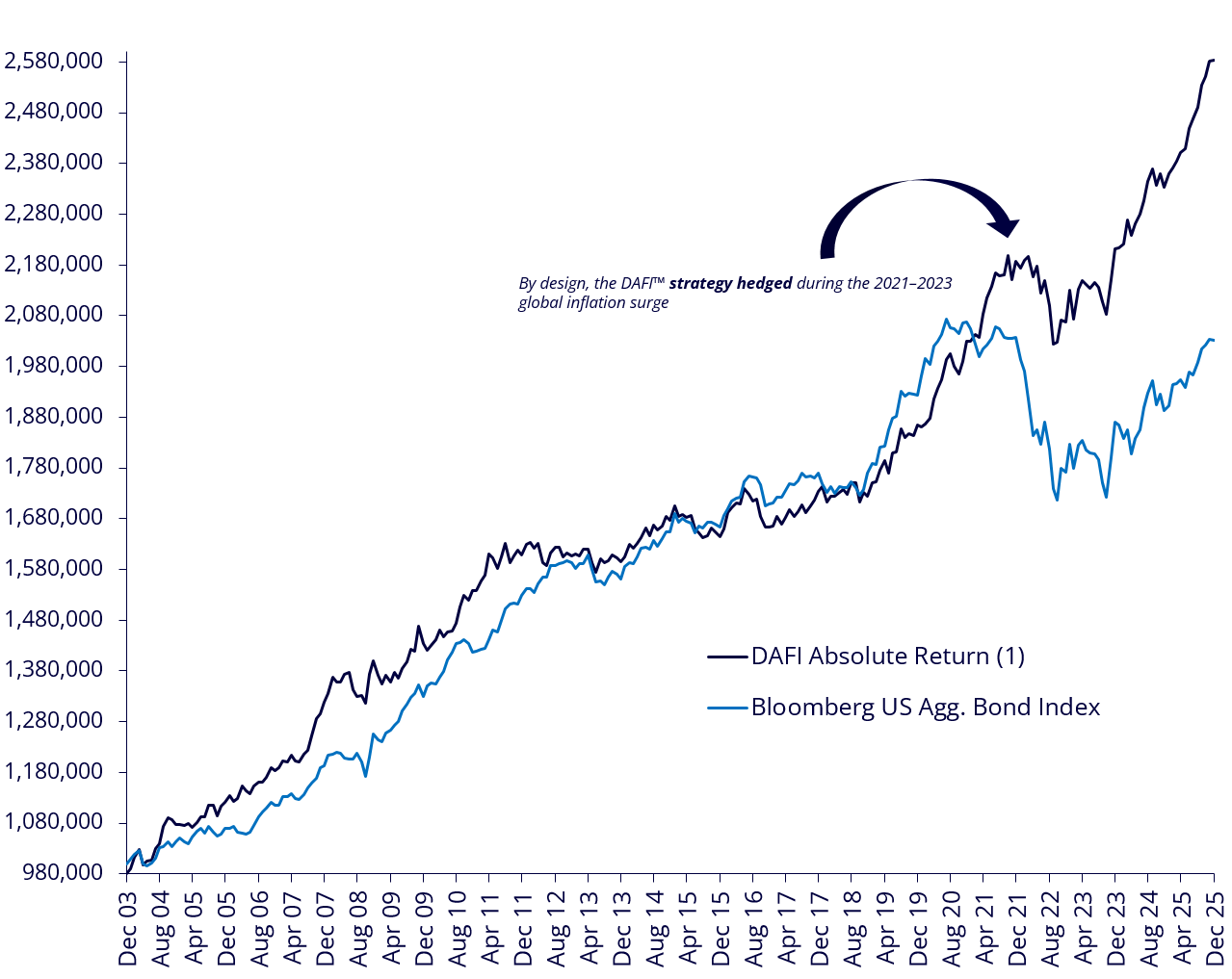 The DAFI™ strategy again proves its efficacy during the 2021–2023 global inflation surge.